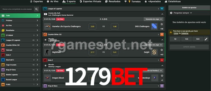 O 1279Bet oferece uma grande seleção de opções de apostas em e-sports com probabilidades competitivas